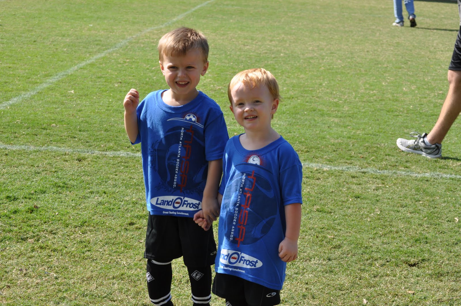 The boys learned to dribble across the field and I have to say Jake was much better than I thought. He did kind of criss-crossed the field but he kept the ball in front of him and kept going. I guess he knew what he was doing.