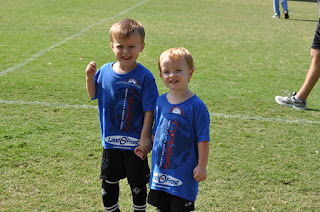 Jake started soccer this fall. He and his friend Matty are playing in an instructional league. They are just learning the basics...no games yet. Last Sunday we all went off to the soccer fields for our very first athletic event. Jake waited patiently in line for his official jersey. Then they all ran for soccer balls. That was funny!