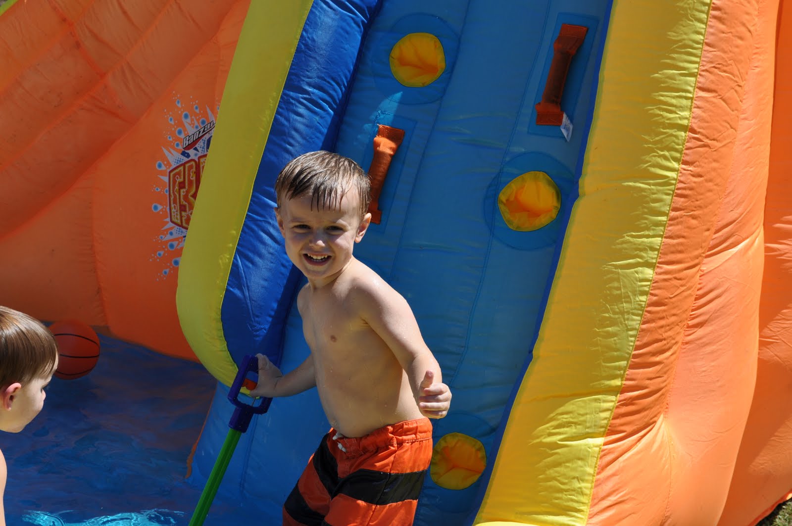 Two weekends ago we went to Hartwell for Kimsey Grace's first birthday party. Jake and Julianna had so much fun! There was a waterslide and snacks and of course cake. Lots of other kids came to play too. Jake ran around and got in and out of the pool.