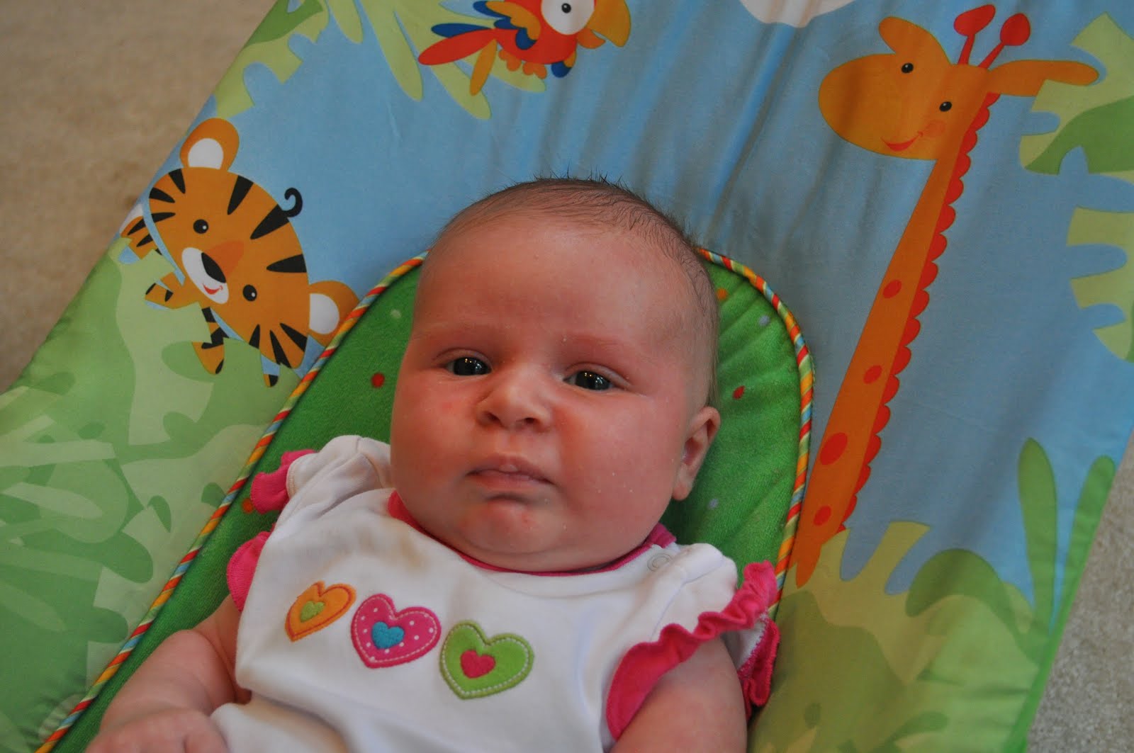 Grace has definitely gotten more into a routine. Thankfully she has started sleeping like a champ! I put her down around 7pm and she only gets up once (for about 15 minutes) until 7am. So great to be getting more than 3 hours of sleep at a time. Hopefully in the next couple weeks she will drop that middle of the night feeding and just sleep 12 hours!