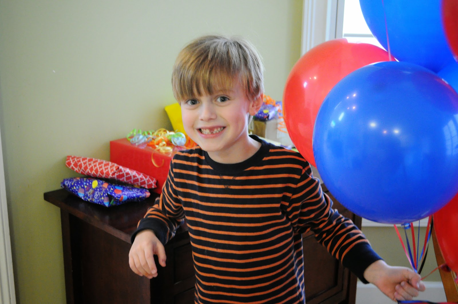 Look how grown up he is! He just lost that front tooth last week. And he has two more that are about to fall out. Poor kid is going to have a hard time eating! Jake is such a great kid. Right now he is totally into Legos, which are everywhere in his room. It's like walking a mine field to get to the bed. But he loves to put things together so who cares about a little mess?